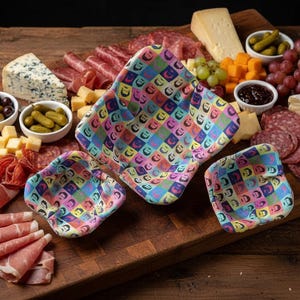 Made of Linen Cotton Canvas fabric with tortilla print Reversible Extra padded Approximately 4" deep x 8.5" wide Photographed with a 6" round (3" deep) glass bowl